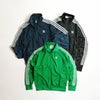 アメリカ流通アディダスオリジナルスのトラックトップ「ファイヤーバード」。もう一つの定番スーパースターがリブ首&ラグラン袖なのに対し、こちらは立ち襟&セットインスリーブで、少しカッチリした印象です。肩から袖に入るスリーストライプと胸元のトレフォイル刺繍は、アディダスクラッシックジャージの象徴。カジュアルでの使い易さは元より、綺麗な合わせにも取り入れられる万能アイテムで、古くからアーティストの愛用者が多いのも頷けます。 こちらはバージンプラスチックスを含まないリサイクルポリ素材「プライムグリーン」や、海に流入する前のプラスチック廃棄物をアップサイクルして生まれた素材を採用した高機能なリサイクル素材「プライムブルー」を採用。基本的な作りはそのままに、地球に優しいサスティナブルなモデルとなっています。