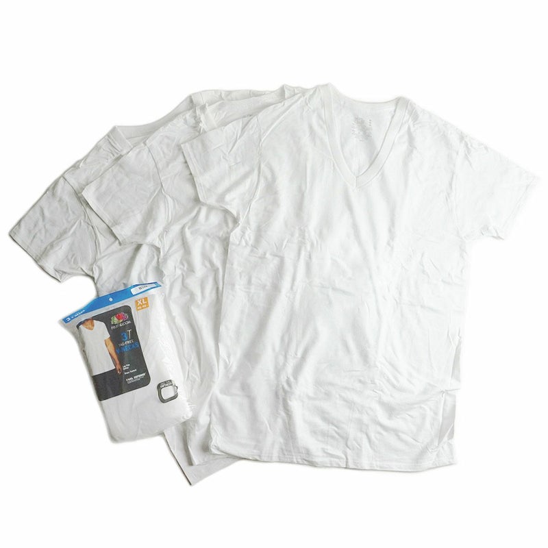 【返品不可】フルーツオブザルーム FRUIT OF THE LOOM 3パック VネックTシャツ ホワイト