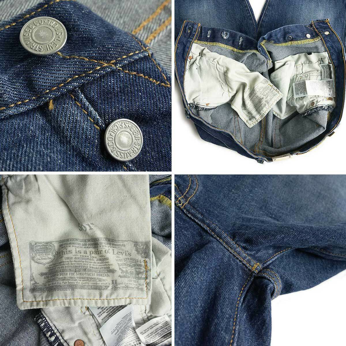 その他仕様 注意点等 | ※フラッシャー、紙タグ、ステッチ等、生産年によりディティールに変更があります。詳細画像と違う場合がありますが、不良ではありません。予めご了承の上お買い求め下さい。 ※右ヒップポケットのレッドタブは通常“Levi's”ですが、稀に“R”マークだけのものも存在します。こちらは、在庫管理上お選びいただく事は出来ません。予めご了承下さい。 ※サイズに若干ばらつきがあります。そのため、表の値は最大2cm程度誤差を含みます。予めご了承の上ご検討ください。 |