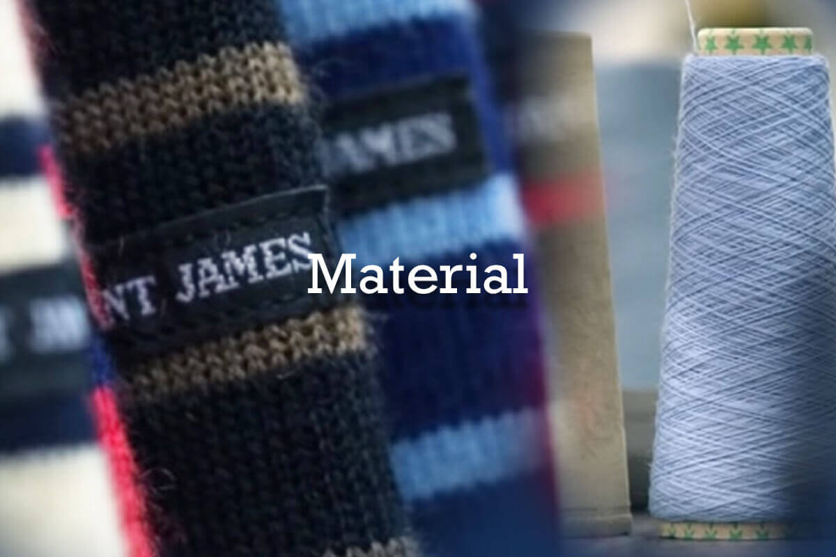 セントジェームスの製品にはコットン、ウールともに厳選された上質の素材が使用されています。セントジェームスのシンボルであるボーダーのパターンは厳密に決められており、袖と身頃の縫い合わせ部分も正確につなぎ合わせられています。また伝統を守りながらも、時代に即した商品開発も行われています。コットン素材も、ピュアコットンからストレッチ素材入りなど、あるいはその糸の太さや特性によって様々に使い分けられています。ジェミニシステムとの提携開発による、表ウール×裏コットンのダブルフェース素材は直接肌に触れる部分に起毛コットンライニング加工を施した、軽量な上に吸湿性、保温性に富む新素材です。
