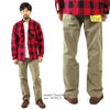 鞍上での安定と、シャツインのカウボーイスタイルを考慮し、股上は深め、腰周りもやや余裕があります。ブーツと合わせ易い様、広めに取られた裾まで、綺麗な直線を描くストレートシルエット。こちらはライトな履き心地の11.5オンス後染めカラーデニム。洗濯によるねじれを防止する為、綾の織目を崩したブロークンデニムは、13MWZの大きな特徴。他にも、鞍での引っかかりを軽減するノースクラッチリベット、乗馬時出し入れし易い様高い位置に施されたウォッチポケット、鞍にくっつく事から革に変わって採用された塩化ビニールのネームパッチ、牛の角に引っかかる事故からボタンフライに代わって採用されたジップフライ、大きなバックルとバランスを考えた長めのフロントベルトループなど、随所に施されたカウボーイの為の機能美が、このモデルの名称「カウボーイカットジーン」たる所以を物語っています。ヒップポケットのWステッチ(通称サイレントW)や、ネームパッチを囲う様に施されたレトロなフラッシャーデザインも泣かせます。
