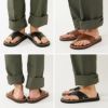 サンダルマンの代表品番として高い人気を誇るレザーサンダル、501ビーチワイド。広く取られた甲部分が上品なトングタイプ。アッパーは100年以上の歴史を誇るブランド革、ホーウィン社のクロムエクセルを採用。オイルをふんだんに含んだしなやかな革質で、新品時より足に吸い付く様な感覚を味わえます。硬さの異なる三層ミッドソールは、しっかりとアーチサポートが施され、高いフィット感を実現。アウトソールは、グリップ力と衝撃吸収性に優れた、ビブラム社のピラミッドソールになります。甲裏のスエードライニングや、柔らかかつ耐久性の高いナイロン鼻緒等も、職人の拘りが感じられる作り。とにかく履き心地が素晴らしく、足を入れた瞬間からその良さを実感頂ける一足です。