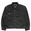 プリズンブルースより、受刑者たちのハンドメイドによって仕立てられたトラッカージャケットのご紹介です。胸元には外付けのフラップポケットを配し、胸下のフロントパネルを二重に重ねた独自のパネリングが特徴。斜めに裁断された外生地の端がハンドポケットの開口部となる、ユニークなデザインが目を引きます。 こちらは、リンスドブラックに当店オリジナルのウォッシュ加工を施した「ニュースクールブラック」。先染めのブラックデニムを着込んだ際に現れる、糸の芯(中白)が露出したグレイッシュな色合いを再現。90年代のブラックデニムを彷彿とさせる、現在ヴィンテージ市場でも人気の高い風合いです。今回も、デニムの聖地・岡山の職人の手により一本一本丁寧に加工を施し、仕上げに当店オリジナルの下げ札を取り付けています。パネルごとに色落ちの出方が異なるため、スジ状の色落ちがランダムに現れ、唯一無二の表情に仕上がっています。入荷数に限りがございますので、ぜひお早めにご検討ください。