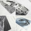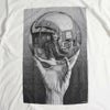 時代を超えて愛され続けるだまし絵の巨匠、M.C.EscherのオフィシャルライセンスTシャツ。オンス軽めのソフトなボディは、着心地が良く雰囲気抜群。現在ラインにはないホワイトを当店別注で頼んだもので、繊細かつコントラスト豊かな作品の数々が綺麗に映えています。全柄手に入れておいても損はありません!Drawing Hands 1948年に描かれた「ドローイングハンズ」。右手が左手を、左手が右手を、それぞれ描き合う不思議な絵。飛び出しているような立体感のある描写も見事です。Waterfall 1961年に描かれた「ウォーターフォール」。建物の中を永遠に流れ続ける水。誰もが一度は目にした事がある代表的なだまし絵です。Reflecting Sphere 1935年に描かれた「リフレクティングスフィア」。手にした球体に移るのはエッシャー自身。その奥に広がる繊細な部屋の描写も秀逸です。Eye 1946年の作品「アイ」。写真かと思うほどリアルに描かれた瞳の奥に移るスカル。現実と非現実が入り混じる独特の世界観を感じる事が出来ます。Relativity 1953年の作品「リラティビティー」。「相対性」の意味が表す通り、様々な角度からの他者との関係性を描いた作品です。