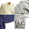 新ブランドオールドバットゴールドより、クルースウェットをご紹介。一番の特徴は、和歌山にある貴重な吊り編み機で編まれた丸胴ボディ。肉厚で弾力があり、フワリとした生地感は、着心地抜群。首元はガゼット(汗止め)が前後に付く両Vで、貼り付けではなくはめ込みです。縫い目は強固かつ、ストレスフリーな4本針フラットシーマー。首から袖下に向けS字に伸びるフリーダムスリーブは動き易く、ナチュラルで綺麗なシルエットを描きます。いずれも1960年代以前のヴィンテージスウェットに見られたディティールばかり。国産ならではの高い技術を用い、手間をかけて作られた逸品で、長くご愛用頂けると同時にエイジングも楽しみな一枚となっています。