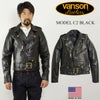 ダブルライダーの基本形“C”の着丈を2インチ短くしたバージョン“C2”。日本ではCよりも広く知られている定番のダブルライダースです。3つのジップポケット、フラップ付きのシガレットポケット、真鍮バックルのウエストベルト、両肩のエポレットといったディテールもさることながら、艶やかなレザーと真鍮パーツが作り出すグラマラスな襟元がC2の最大の魅力。裏地はキルトライニングが施されており、冬場も活躍してくれます。内ポケットは右身頃に一つ、袖口はジップ仕様。シルエットも良く、バンソンでしか味わう事の出来ない、洗練されたダブルライダースとして根強い人気を誇っているモデル。もちろんレザーはバンソンの象徴とも言えるコンペティションウエイトレザー。独特の光沢を放つクローム仕上げのトップグレインカウハイドは、新品時固いと感じる方もいらっしゃると思いますが、着込む程に体に馴染み、自分だけのエイジングを楽しむ事が出来ます。