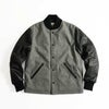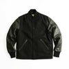 | 素材 | ボディ外生地:ウール80% ナイロン20% 裏地:ポリエステル100%、またはアセテート100% 袖:カウハイドレザー100% リブ:コットン55% ウール45%、またはアクリル52%、ウール48% |