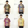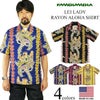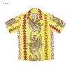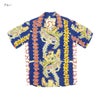 カメハメハのアロハシャツ「レイレディー」。タイトル通り、フラワーレイと女性をモチーフにしたデザイン。カメハメハが得意とするボーダー(縦縞)パターンで、エンジニアードプリントと呼ばれる技法により、しっかりとセンターに配置されています。また、フロント、胸ポケットの柄合わせも見事。素材は微細な畝と光沢が特徴で、初期ヴィンテージアロハにみられる富士絹に似た生地感がその名の由来とされるフジエットレーヨン。トップにループを用いた開襟襟で、サイドシーム、アーム取付はダブルステッチを採用。フロントは風合い豊かなリアルココナッツボタンで、替えボタンもしっかり付属してます。