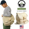 テラパックスの定番ショルダーバッグ「サンデータイムズ」。外生地は丈夫なヘンプ素材、裏地のない一重ですが、全ての生地端にパイピングが施された丁寧な作り。メインの荷室は大きなパネルポケットが付属。外側前後に大きなポケット、両サイドにもポケットが付き、高い収納力を備えています。レザーレース、鹿角トグル、純真鍮のDカンで作られたフラップの留め具は、非常に象徴的なディティールです。