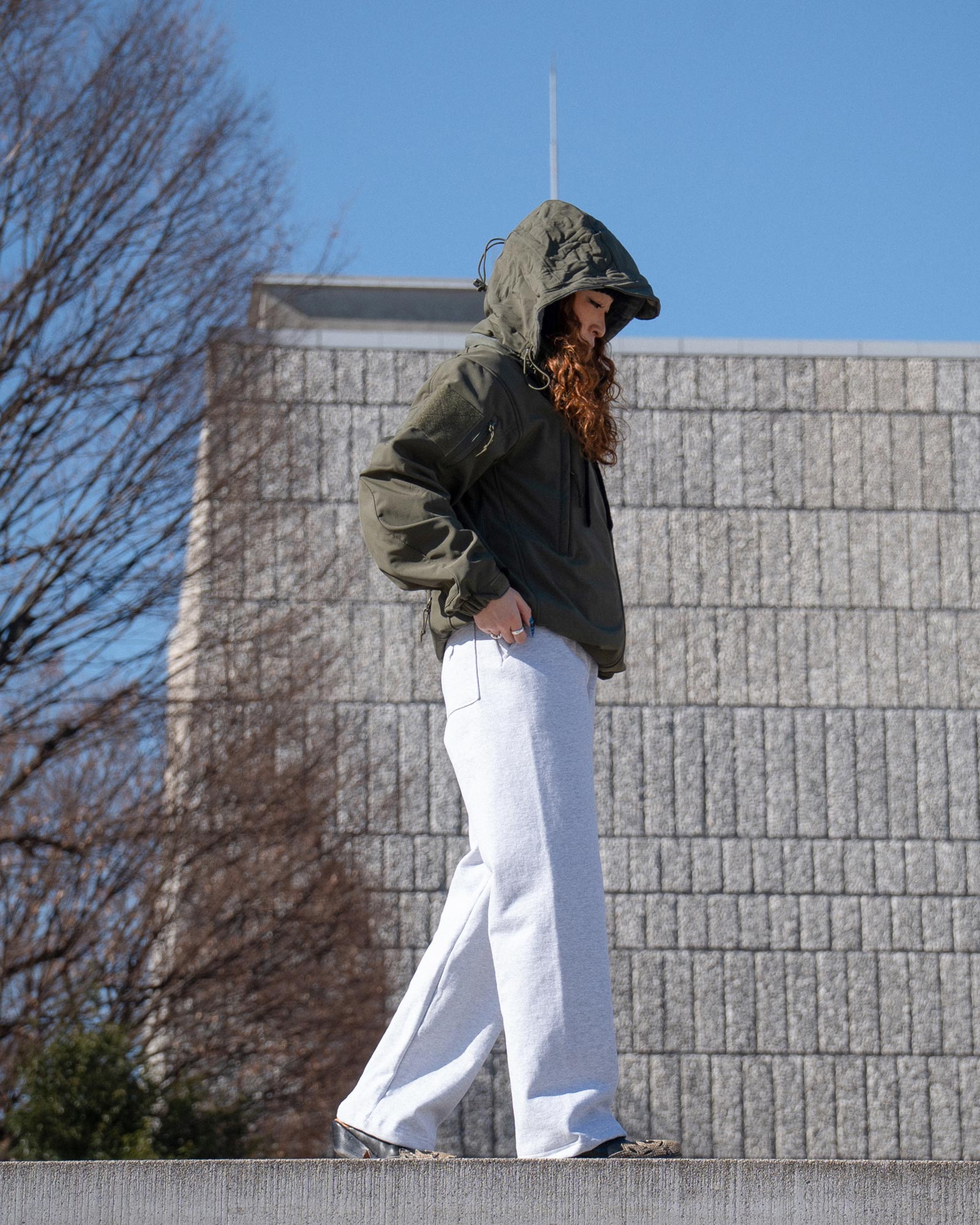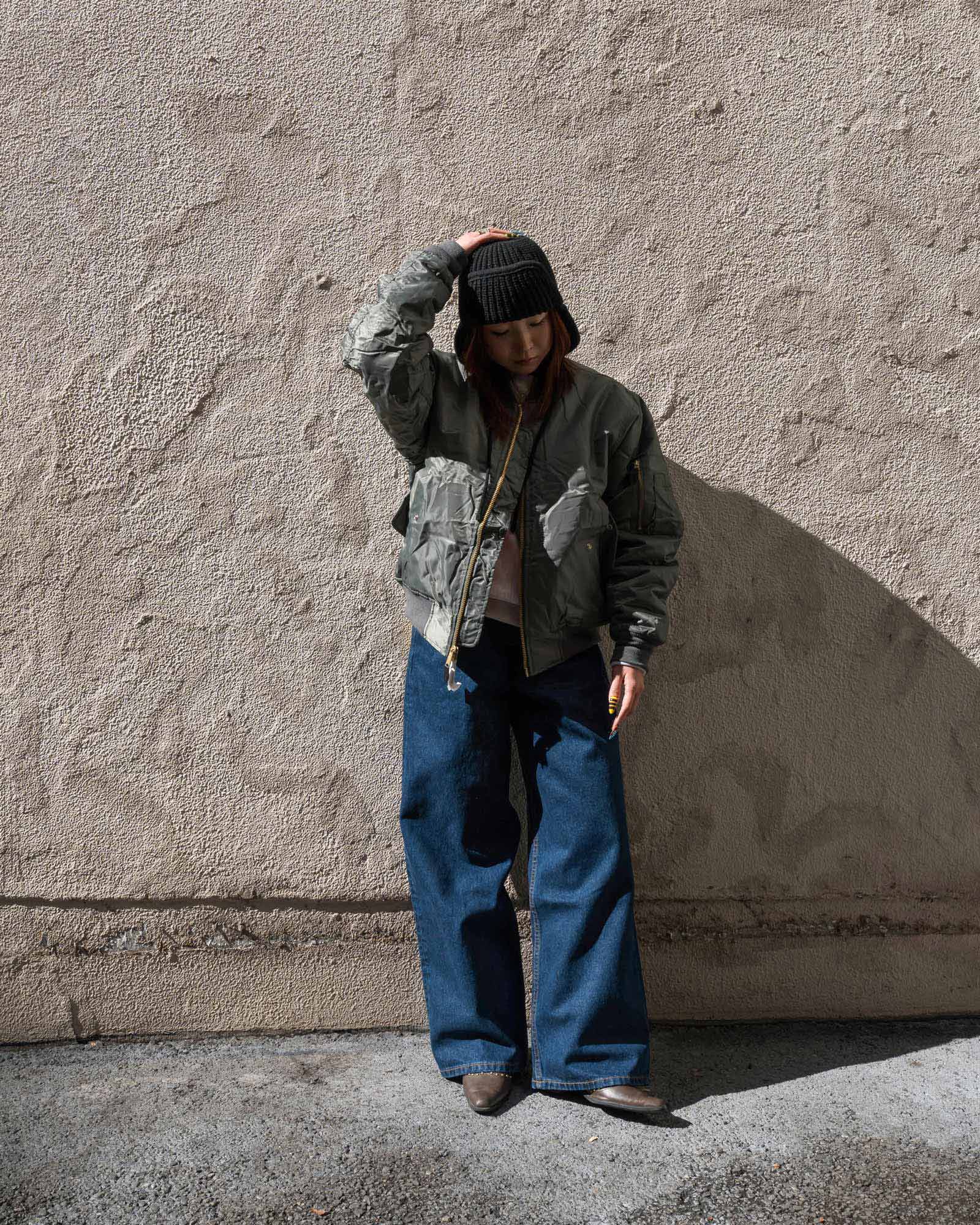 ミリタリー感が出すぎないバランスを意識して、冬から春まで長く使える実用性の高いコーディネートです。