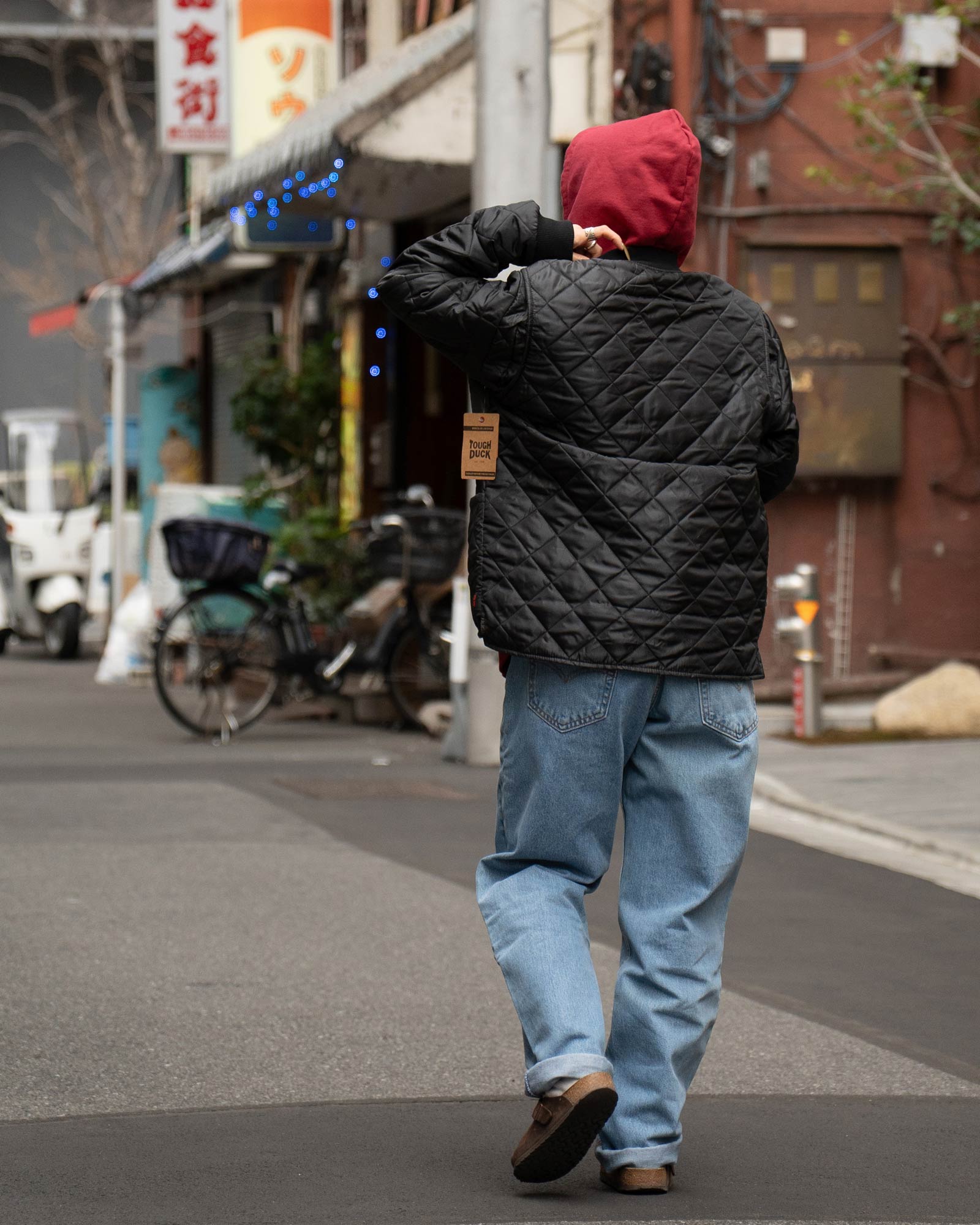 当店別注のオニータのフーディーと、リーバイス550を合わせて、ワーク×デニムの王道スタイルでまとめました。