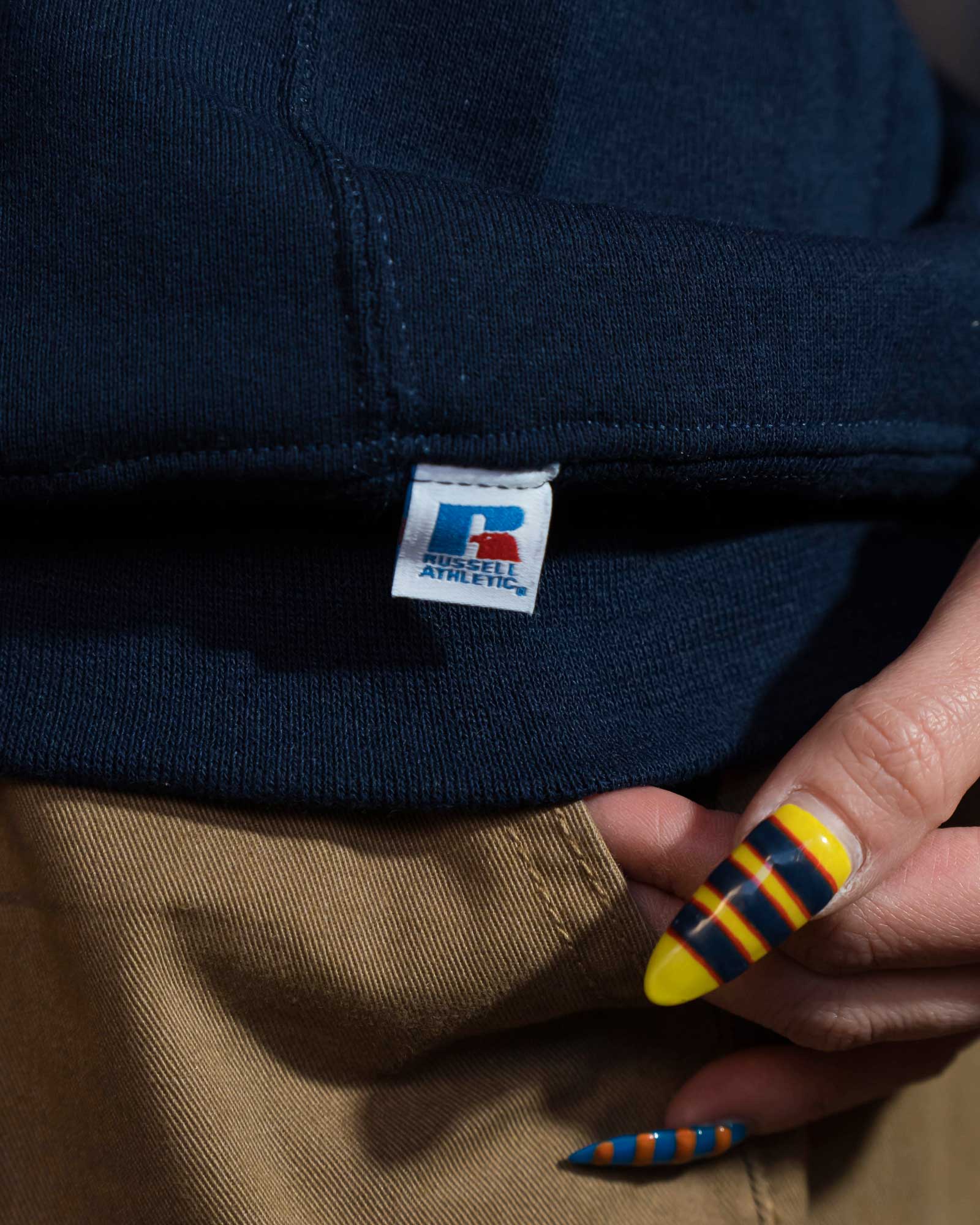 ラッセルのスウェットは軽くてふっくらとした生地感で、女性でも取り入れやすい一枚です。
