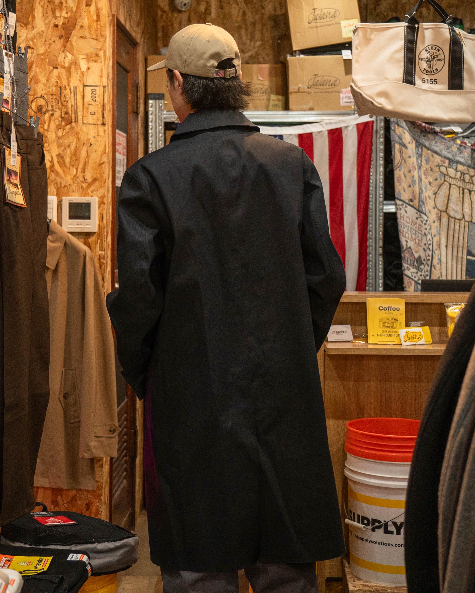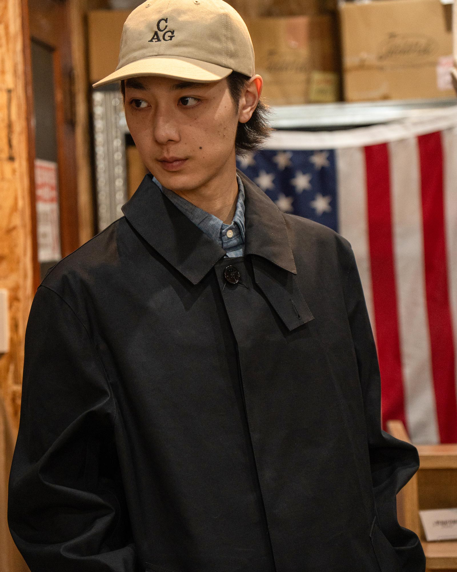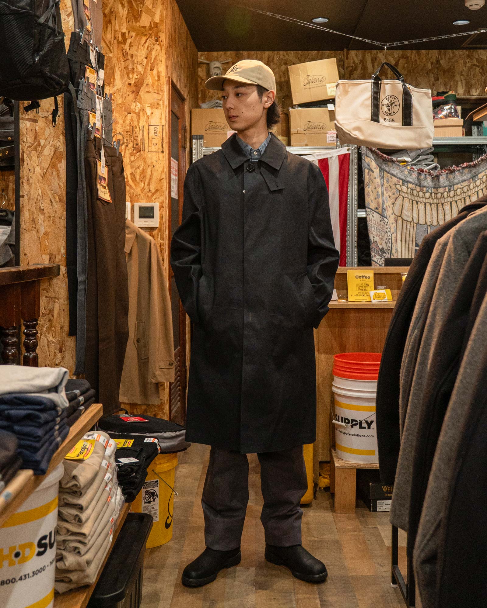 サイズ感やレビュー:膝上丈のAラインがきれいに出る、マッキントッシュのフラッグシップモデルです。今回はゆったりめに着用。職人によるハンドメイドで、手に取った瞬間に「良い物」と分かる一着。防水・耐風性能も、天気が変わりやすい春先に頼れます。