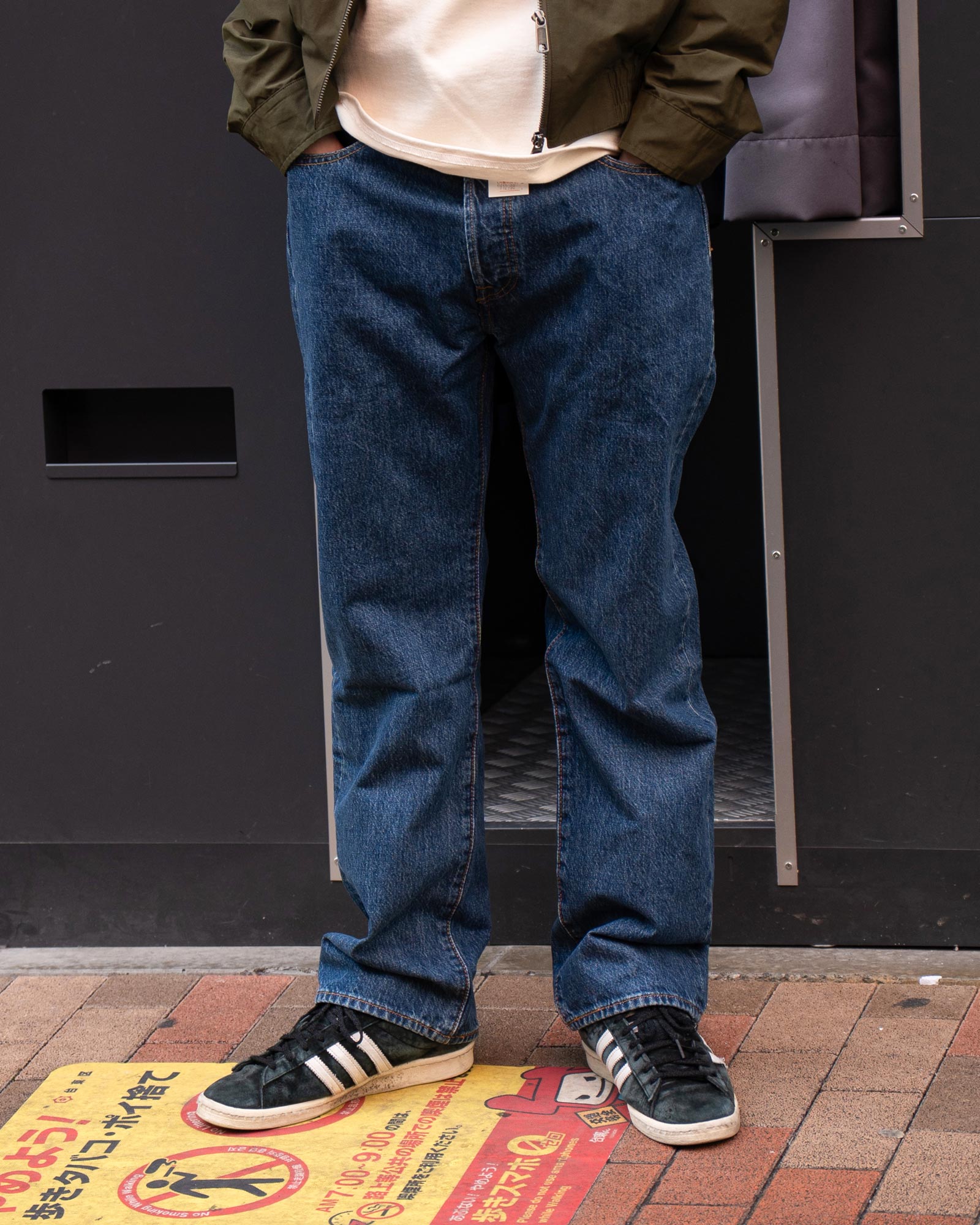 サイズ感やレビュー:色落ちが均一で、やりすぎないフェード感がちょうどいい「501」。濃さを少し残したインディゴカラーは落ち着いた表情で合わせやすい一本です。