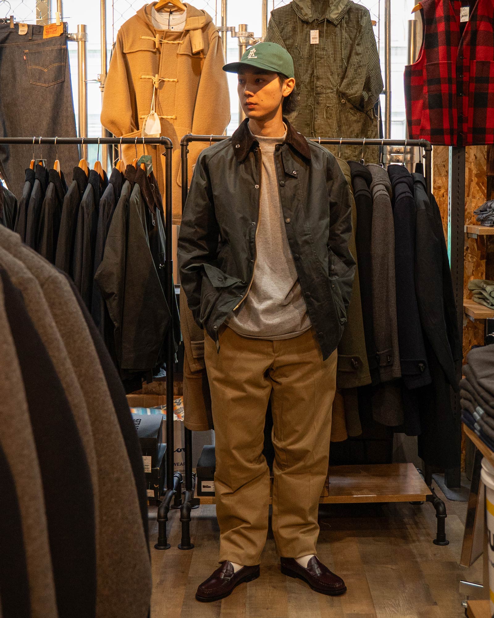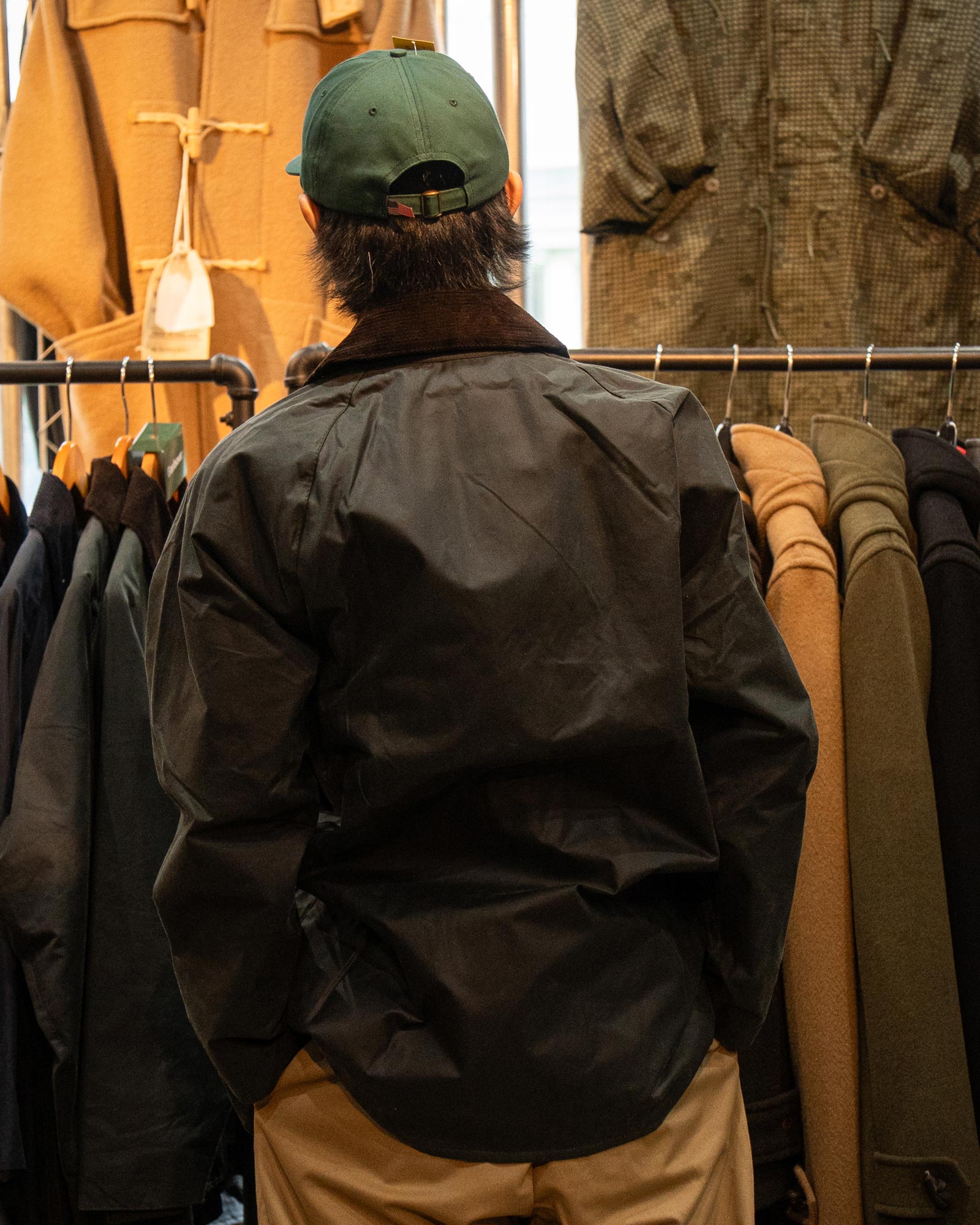 サイズ感やレビュー:サイズ38で、ゆとりのあるジャストサイズです。バブアの定番「ビュフォートジャケット」のオリジナルモデル。お尻が隠れる長めの丈が特徴で、スーツやジャケットのオーバーコートとしても使用可能です。