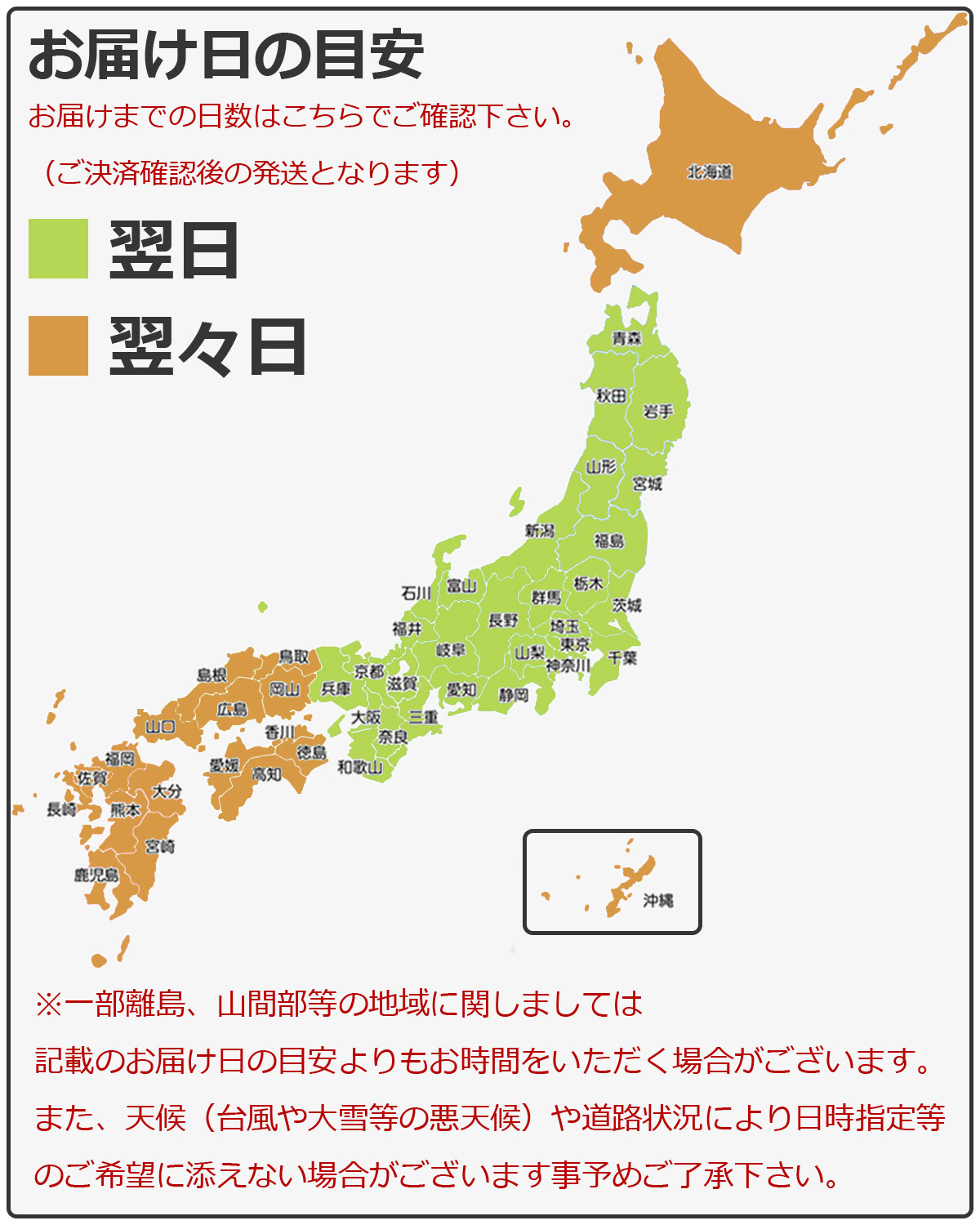 ※毎日(土日祝を除く)、午後2時頃にご入金の確認処理をしております。午後2時までにご入金頂きましたお客様に関しましては、ご入金の確認が出来次第、即日出荷致します。また、出荷の際に再度メールで出荷報告(確認日の16時頃)をさせて頂いておりますので、ご確認下さい。