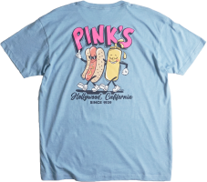 HOTDOGS(ピンクスホットドッグス)」のオリジナルTシャツ。こちらのドジャースTシャツは、ピンクスのオーナーさんがスタッフ用に作ったTシャツです。大谷選手加入後、さらにドジャースの注目度も上がっていますね。